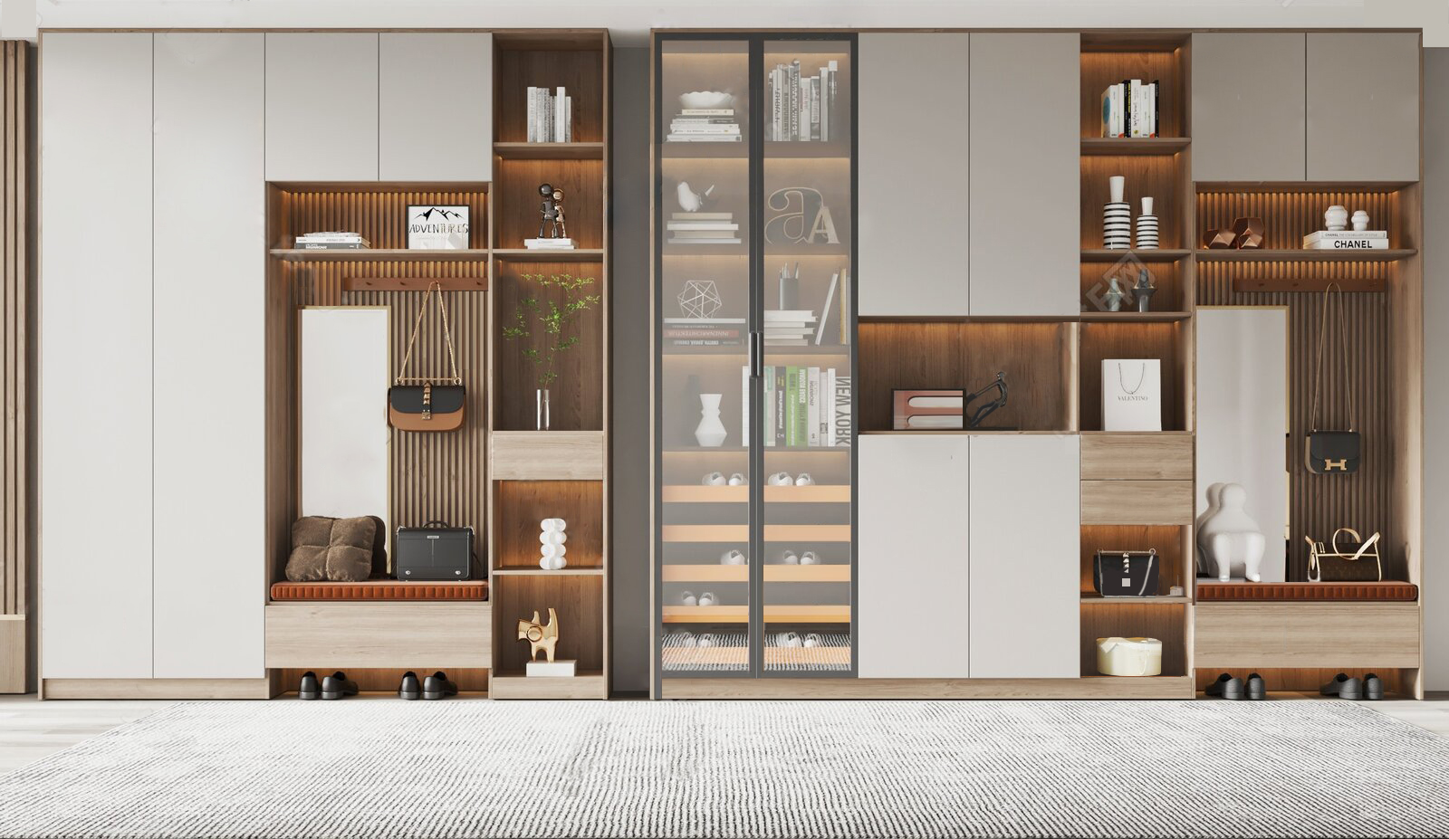 精致的生活来自恰到好处的细节推敲-一个具有颜值且功能兼备入户鞋柜必备要点总结鞋凳+挂衣区+鞋柜+收纳区-动线合理设计:1.回到家(或者准备出门)一系列动作要点换鞋2.解放双