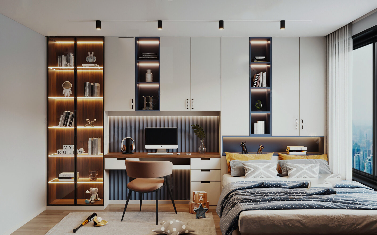 儿童房设计案例,配色高级风